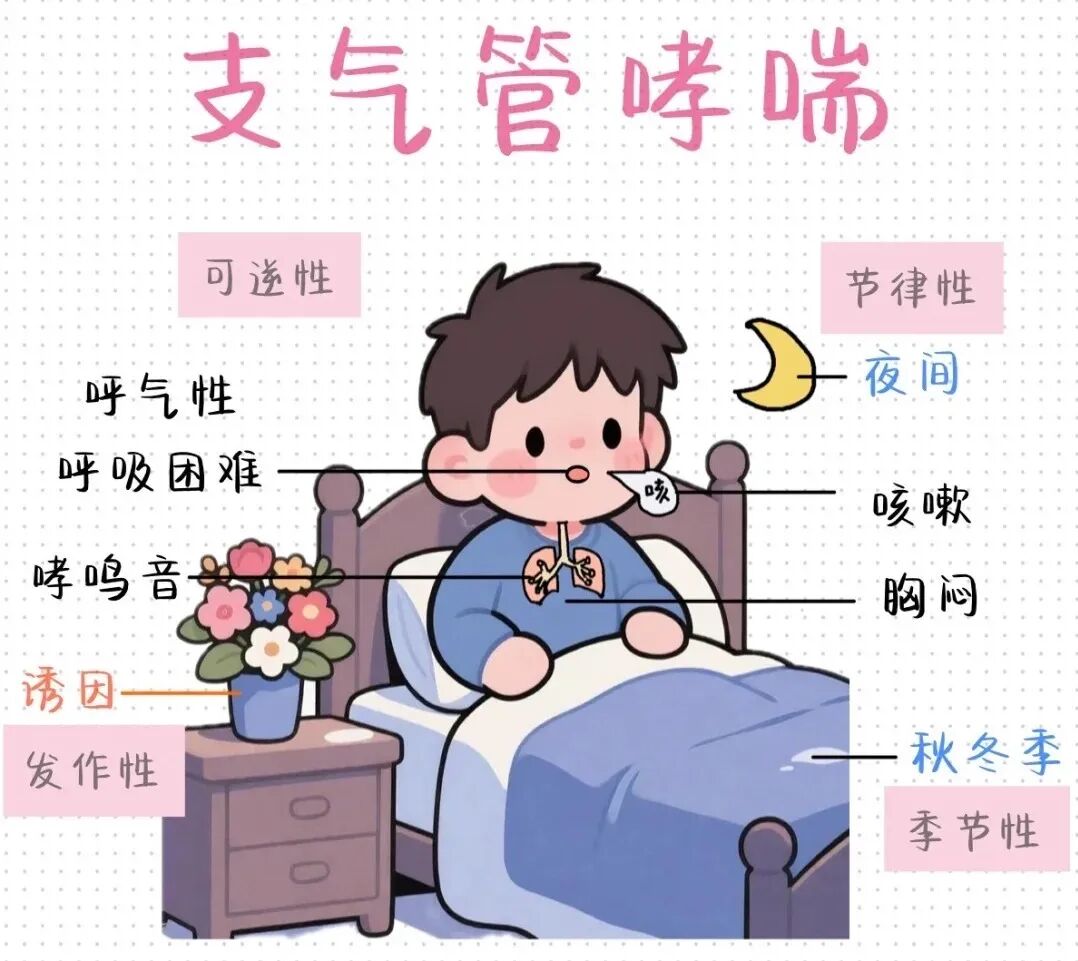 如果您长期、反复出现胸闷、喘息的症状,特别是有以下特征,应高度怀疑哮喘: